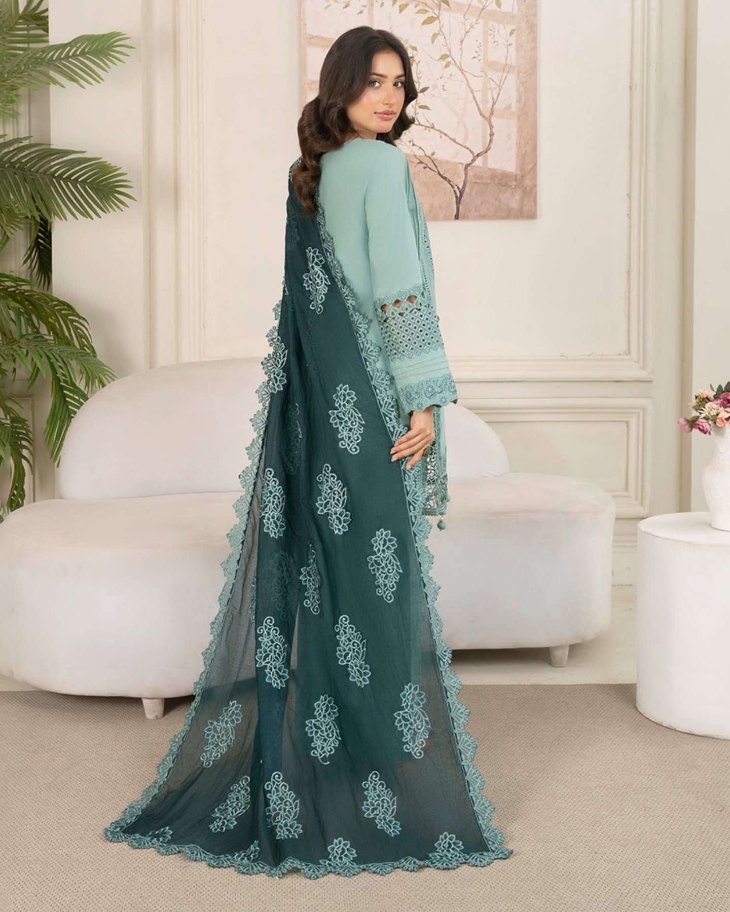 Paired with a delicate organza dupatta, this set exudes a graceful flow, making it perfect for casual gatherings, semi-formal occasions, or festive events. Lightweight, elegant, and effortlessly stylish, itโs the ideal choice for women who value both comfort and refined design.