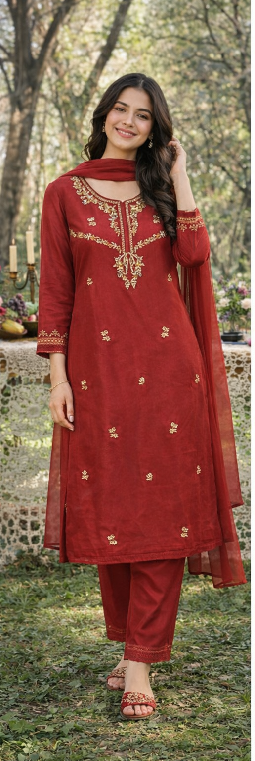 Number of Pieces: 3-piece set (Shirt + Trouser + Dupatta)