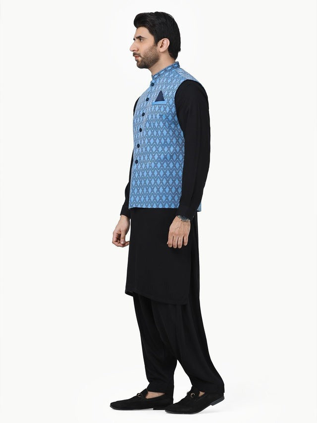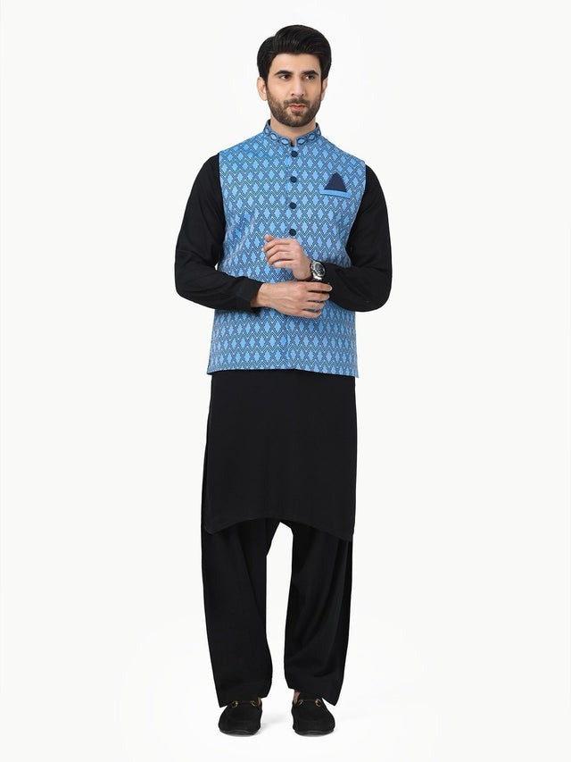 Elevate your formal eastern style with this Men’s Sky Blue Embroidered Waistcoat – Traditional Formal Wear, designed to bring sophistication and charm to every special occasion. Featuring elegant embroidery on a refreshing sky blue base, this waistcoat blends classic tradition with modern refinement. The tailored fit and clean structure make it a perfect layering piece over kurta shalwar or formal attire, ensuring a sharp and graceful appearance for weddings, festive celebrations, and formal gatherings.