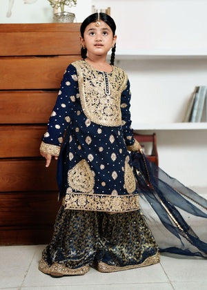 Navy Blue Chiffon Long Shirt Gharara Set with Dupatta β 3 Piece Festive Wear