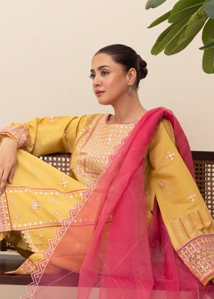 Add a splash of sunshine to your festive wardrobe with this vibrant Yellow 3-Piece Kurta Set. Crafted from soft and breathable chambray fabric, the straight-cut kurta pairs effortlessly with matching trousers, while the delicate organza dupatta adds a touch of elegance. Perfect for festive celebrations, parties, or all-season wear, this set combines comfort, style, and sophistication in one beautiful ensemble.